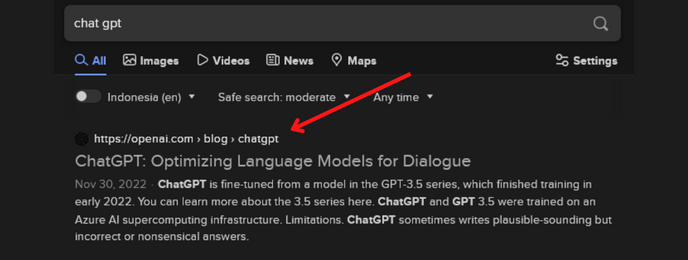 Pergi ke chat.openai.com Kita bisa langsung search di Google