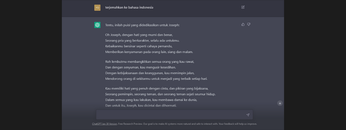 Saya Baru saja Menuliskan "can you write (a) poem for Joseph"